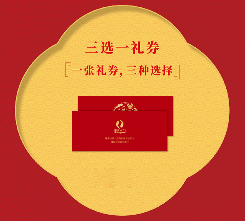 時(shí)隔一年,東沃再次推出“三選一禮券”,一張禮券,三種產(chǎn)品任選??蛇x產(chǎn)品涵蓋:國(guó)產(chǎn)海鮮、佛跳墻、遼刺參、大閘蟹(時(shí)令產(chǎn)品)、海鮮干貨。多樣化的產(chǎn)品選擇,讓送禮更顯價(jià)值。