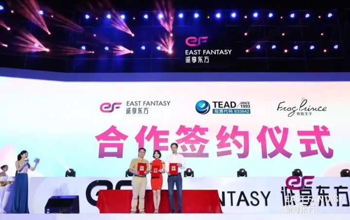 2017年10月21日,在誠享東方掛牌慶典晚會上,天藝傳媒攜手知名美妝移動電商——誠享東方,及國內領先日化企業(yè)——青蛙王子在廈門音樂島正式舉行簽約儀式。三方將在未來共同推出以“阿巴兔”為品牌形象的兒童護理系列產品。